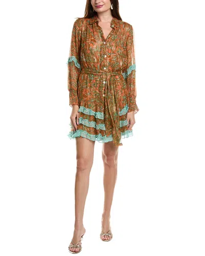 Olga Short Dress In Multicolour | Belt & Inner Included | Delicate Floral Print, Long Sleeved Bo
