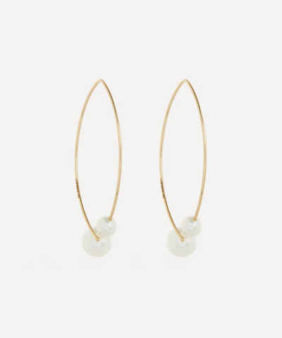 14ct Gold Medium Double Pearl Open Marquise Drop Earrings