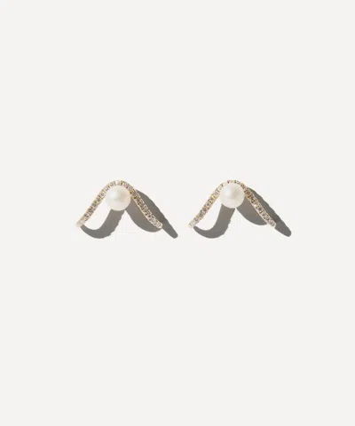 14ct Gold Diamond And Pearl Curve Stud Earrings