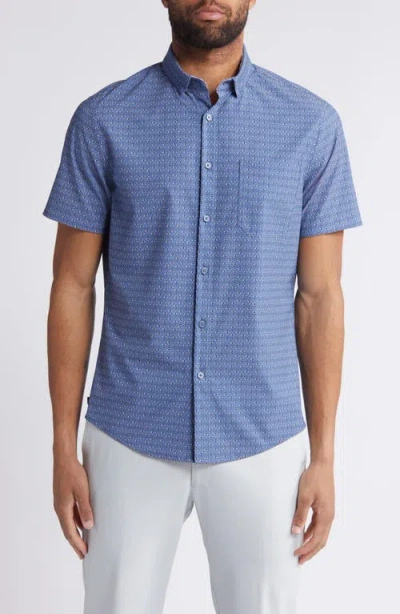 Mizzen+main Halyard Trim Fit Geo Print Short Sleeve Performance Button-up Shirt In Blue