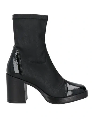 Woman Ankle Boots Black Size 6 Leather, Textile Fibers