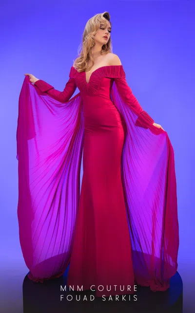2793 Long Formal Pleated Mermaid Evening Dress In Pink