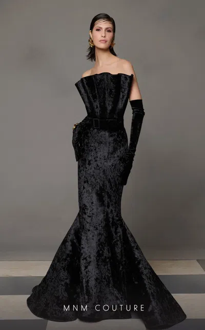 N0631 Pleated Velvet Long Mermaid Formal Prom Dress In Black
