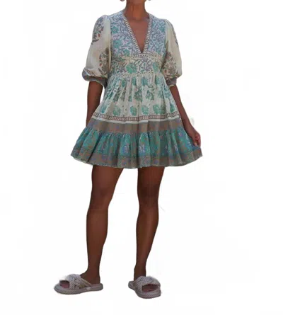 Honeydew Mini Dress In Green Multi In Blue