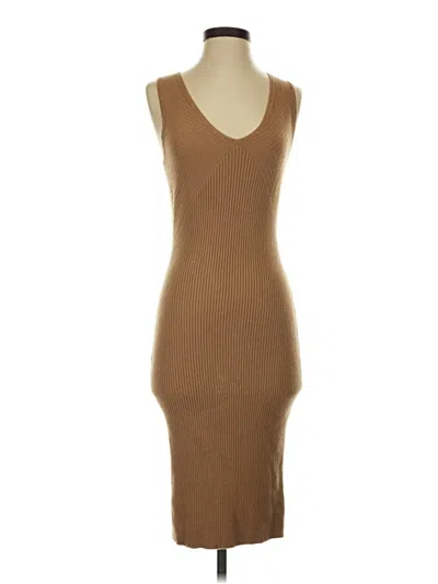 Pre-owned Short Sleeve Top Tan V Neck Tops In Brown
