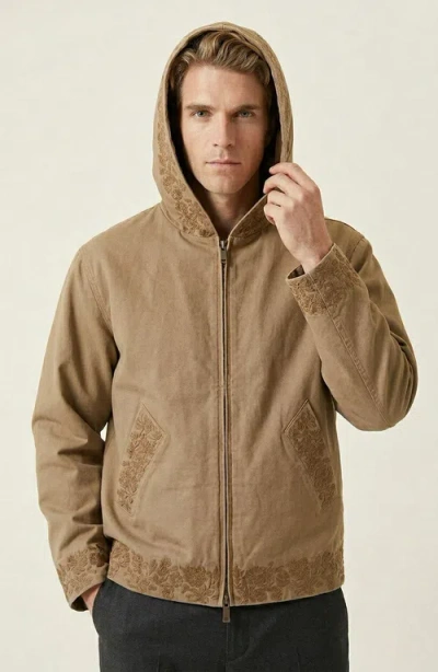 Men's Brown Hooded Zip Jacket Embroidered Detail Relaxed Silhouette