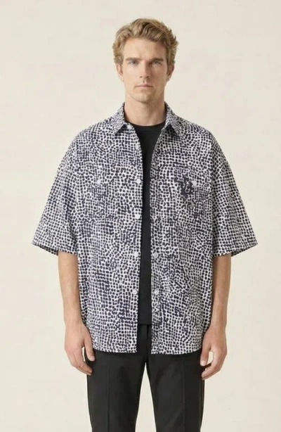 Men's Blue Abstract Print Cotton Shirt Utility Accent Relaxed Fit