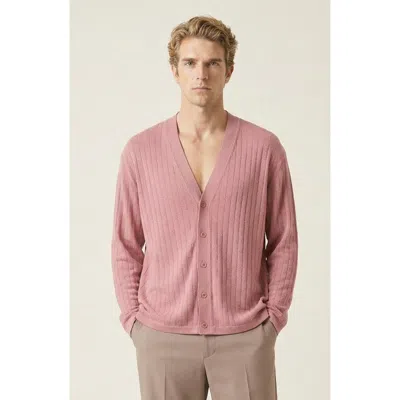Men's Pink Ribbed Knit Cardigan Relaxed Fit Soft Texture
