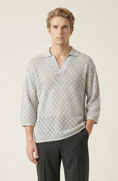 Men's Neutrals Textured Knit Polo With Open Collar And Quarter-length Sleeves