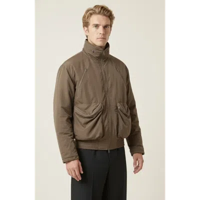 Men's Brown Funnel Collar Bomber Jacket Relaxed Fit Sculpted Zip Pockets