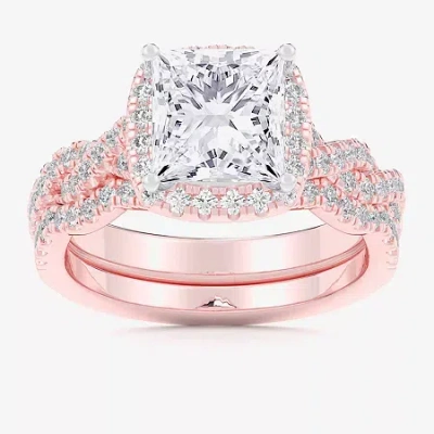 (g / Vs2-si1) Womens 6 Ct. T.w. Lab Grown White Diamond 14k White Gold Side Stone Bridal Set In Pink