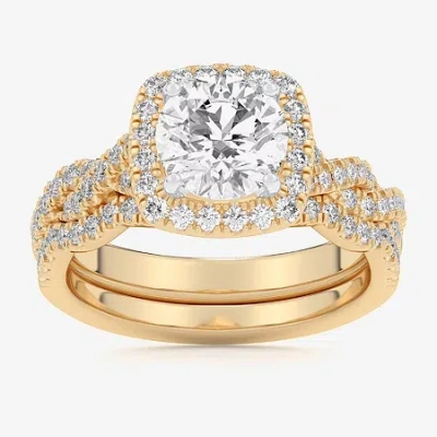 (g / Si2) Womens 2 Ct. T.w. Lab Grown White Diamond 10k Gold Round Side Stone Bridal Set In Yellow