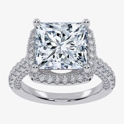 (g-h / Vs2-si1) Womens 5 1/2 Ct. T.w. Lab Grown White Diamond 14k White Gold Side Stone Halo Engagem In Silver