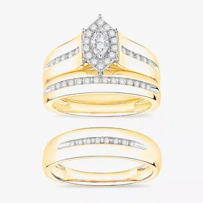 (i / Si1) 3pc Trio Set Featuring 1/2 Ct. T.w. Lab Grown White Diamond 10k Two Tone Gold Marquise Sid