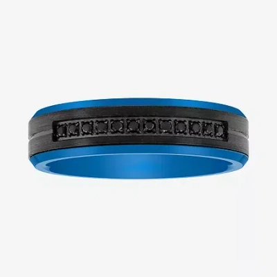 Mens 6mm Diamond Accent Natural Black Diamond Tungsten Wedding Band In Blue