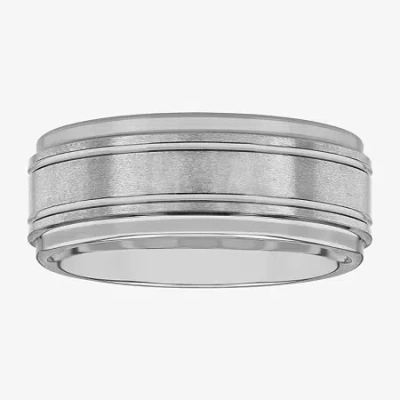 Mens 8mm Tungsten Anniversary Wedding Band In Silver