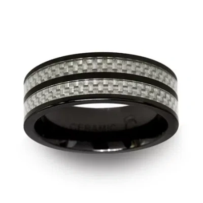 Mens 8mm Tungsten Carbide & Ceramic Wedding Band In Black