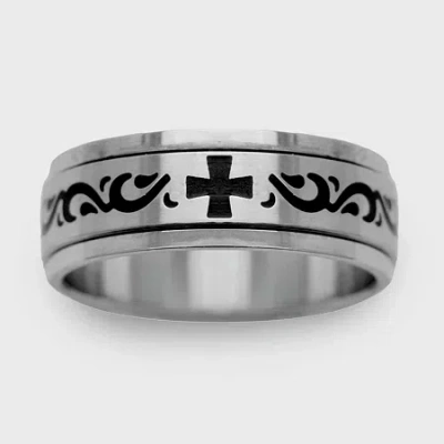 Mens 6mm Stainless Steel Cross Wedding Band In Gray