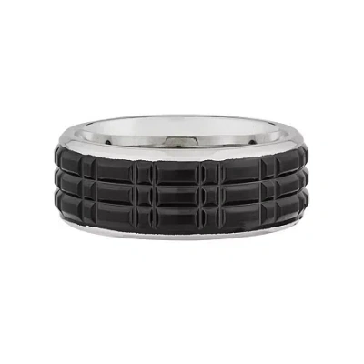 Inox Mens Jewelry 8mm Diamond-accent Stainless Steel Round Wedding Band In Black