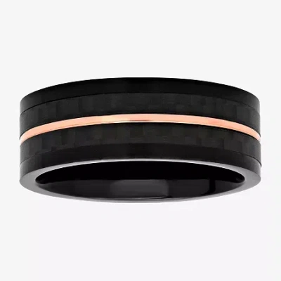 Mens 8mm Two-tone Titanium Wedding Band In Black