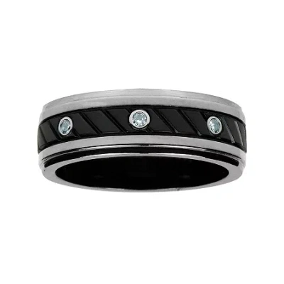 Mens 1/10 Ct.t.w. Natural Diamond Black Stainless Steel 8mm Wedding Band