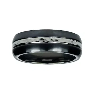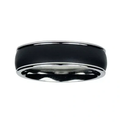 Mens 8mm Two-tone Titanium Wedding Band In Black