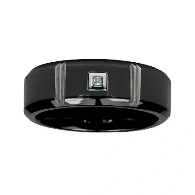 Mens Diamond-accent Black Titanium Wedding Band