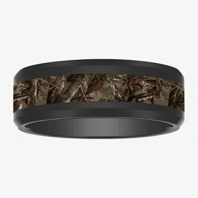 Mens Black Ceramic And Camo Inlay 8mm Comfort Fit Wedding Band In Brown