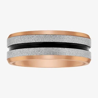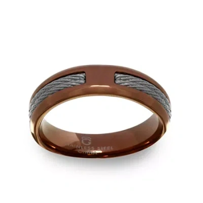 Mens 7mm Stainless Steel Wedding Band In Brown