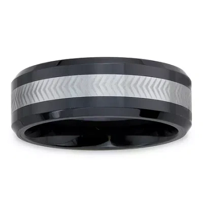 Mens 8mm Tungsten Carbide & Ceramic Wedding Band In Black