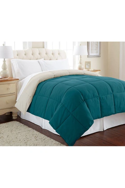 Down Alternative Reversible Comforter In Blue Coral/oatmeal