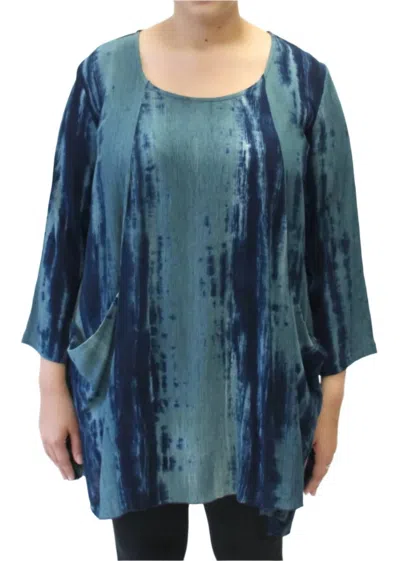 Hand Painted Two Pocket Swing Tunic In Blue Multi