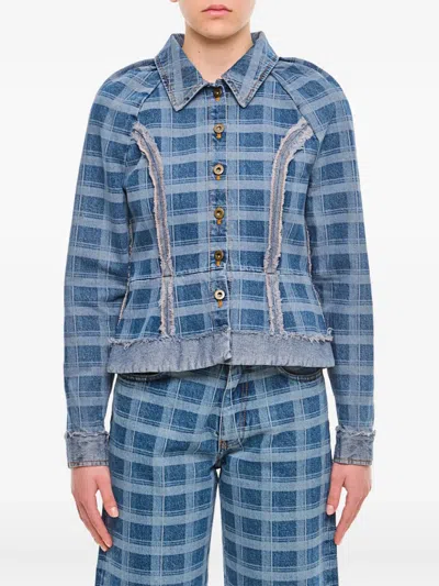 Checked Denim Jacket In Blue
