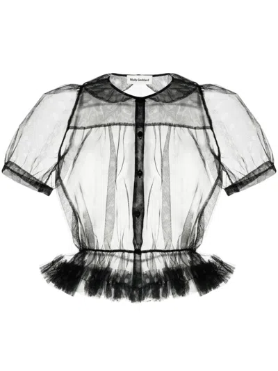 Ruffled Polka-dot Tulle Shirt In Green