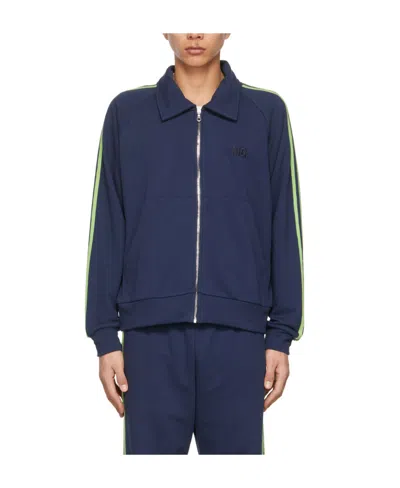 Navy Blue Side Stripe Panel Casual Jacket In Navy_green