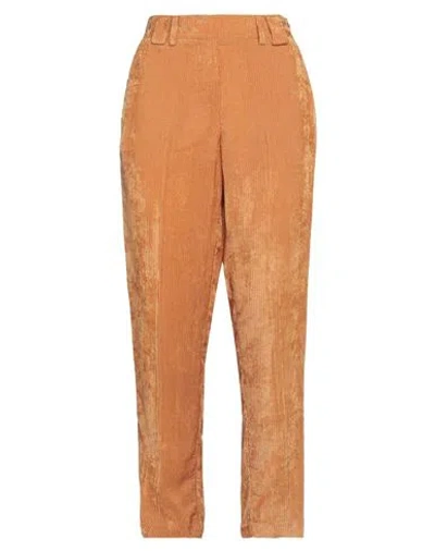 Woman Pants Camel Size 8 Cotton, Elastane In Brown