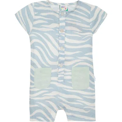 Babies' Zebra Print Linen Henley Romper In Natural/sterling Blue