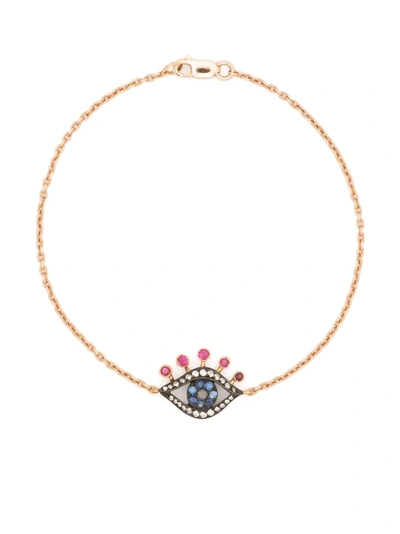 18kt Rose Gold Evil Eye Diamond, Sapphire And Ruby Bracelet In Rosa