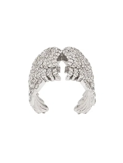 18kt White Gold And Diamond Wing Cocktail Ring In Metallic