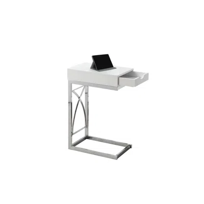 Accent Table, C-shaped, End, Side, Snack, Storage Drawer, Living Room, Bedroom In White