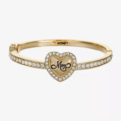Mom Womens Glass Heart Bangle Bracelet In Gold