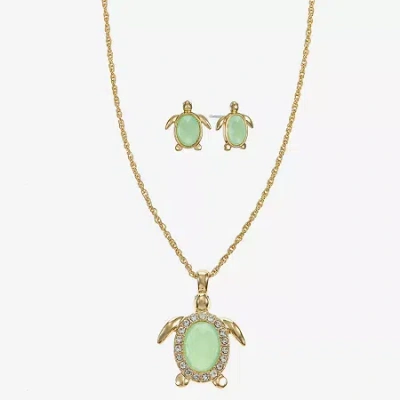 Turtle Womens Green Glass 2-pc. Jewelry Set In Gold