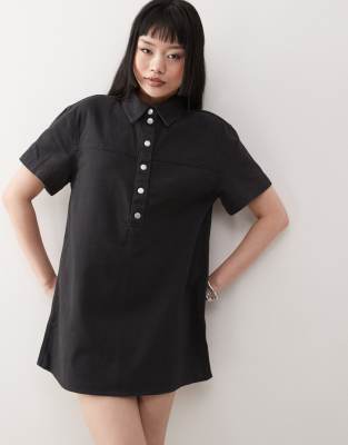 Oversized Twill Shirt Dress In Black