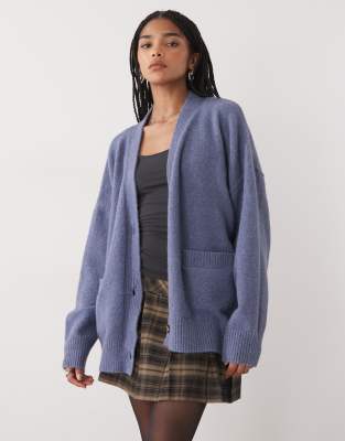 Slim Faux Fur Trim Zip Cardigan In Blue
