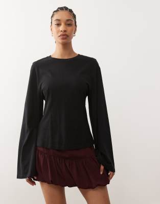 Long Sleeve Cinched Waist Top In Black