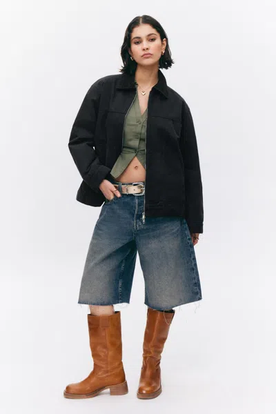 Low Rise Cargo Cotton Twill Jorts In Blue