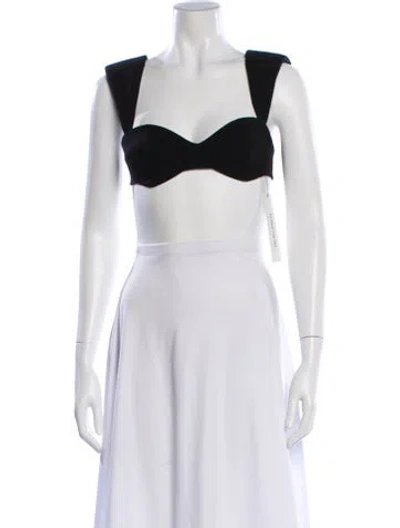 Pre-owned V-neck Sleeveless Crop Top In Black