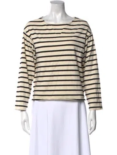 Pre-owned Striped Bateau Neckline Sweatshirt In Neutral