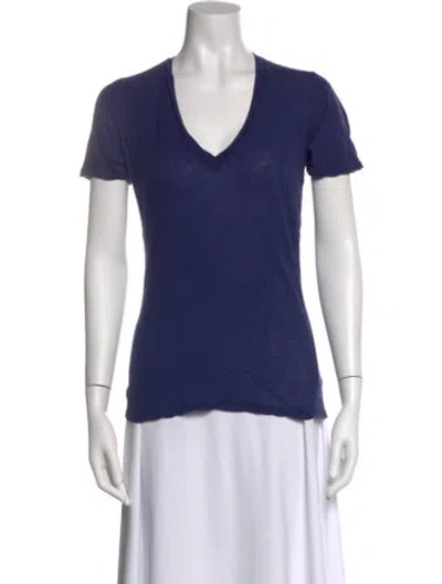 Pre-owned V-neck Short Sleeve T-shirt In Blue