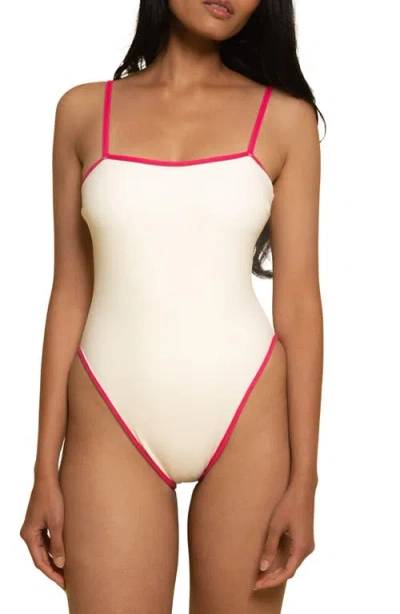 Jacelyn One-piece Swimsuit In Cream Raspberry Binded